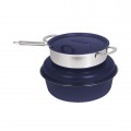 Seasons Induction Soup Tureen, 6 qt., 13-3/4" dia. x 9-1/4"H O.A, hinged notched cover, 18/10 mirror polished stainless steel, sapphire with chrome accents (does not take an insert pan)