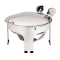 Suite Server Sauteuse, round, 1-1/4, 2-1/2 or 4 qt., 15-1/4" dia., hinged lid with handle and knob, includes stand, stainless steel with chrome accents (Stock Item)