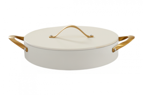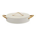 Ambassador Induction Chafer Casserole Dish, 4 qt (3.785 liter), 11" dia. x 2.75"H, ivory, cast-iron aluminum and ceramic material, Limited Lifetime, 1-year warranty coating & handles