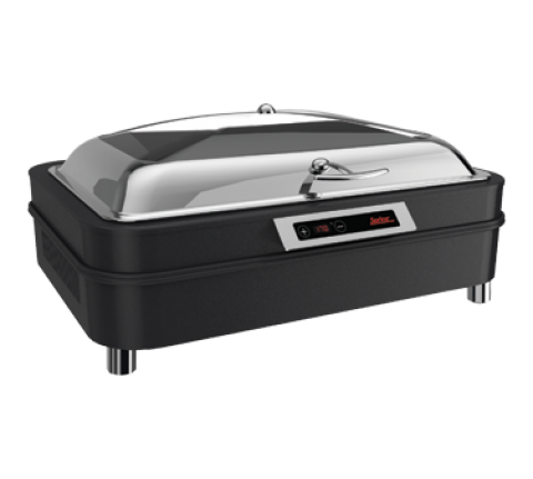 Solstice Hot/Cold Server, 8 qt., 24"W x 18-9/10"D x 11-2/5"H, 27"H with oven cover, rectangular, includes: full size cast aluminum insert pan, easy view tempered glass hinged cover & electronic control panel, stainless steel titanium housing, temperature range: 23°F to 50°F & 120°F to 185°F, 110-120v/60/1-ph, 230 watts, 1.9 amps, NEMA 5-15P, ETL, UL, CSA, NSF (Stock Item)