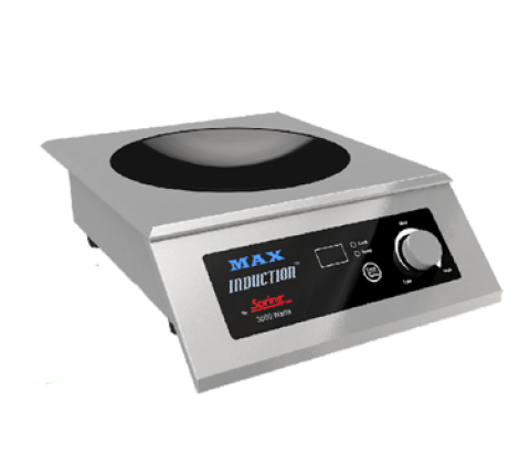 MAX Induction™ Cook & Hold Wok Range, countertop/built-in, single, 14-5/8"W x 19-1/8"D x 5-3/4"H, includes: (1) Primo 7 qt. non-stick wok (8216-60/34), SmartScan® technology with over/under voltage protection, pan size & type recognition, & large LED power/temp display, concave shaped coil & tempered black smoked glass surface & faceplate, silicone rubber protective top seal, non-skid/non-scratch base & footing, removable mesh air filter, solid state controls, power on/off knob & power on/pan-present indicator lights, (2) functions: cook or temp mode, knob set thermostatic control, lighted temperature indicator, power level: 1-20 in "cook" mode, temperature range: 110° - 400° F (43° - 204° C) in "temp" mode, stainless steel body, 208-240v/60/1-ph, 3500 watt, 14.6 amps, NEMA 6-20p, ETL, UL-STD 197, FCC, cETL, ETL-Sanitation to NSF-4 (Stock Item)