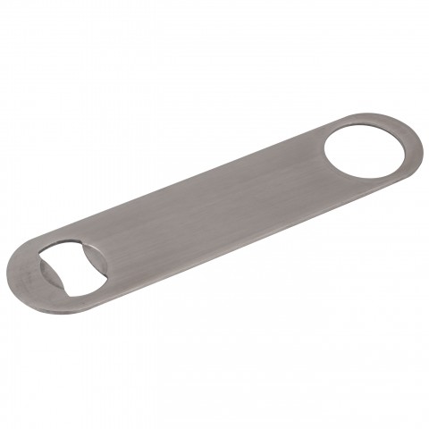 Flat Bottle Opener, 7" long, hand held, heavy stainless steel