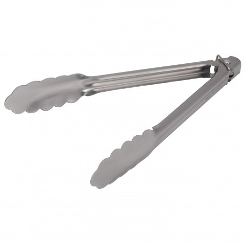 Utility Tongs, 9-3/4" long, spring action, locking ring, heavy duty, stainless steel
