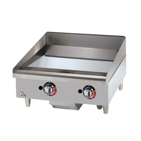 Star-Max® Heavy Duty Griddle, gas, countertop, 24" W x 21" D cooking surface, 1" thick chrome griddle plate, embedded modulating thermostat every 12", heavy duty knobs, wrap-around stainless steel splash guard, grease trough & stainless steel drawer, welded steel frame with stainless steel front, 4" legs, 56,600 BTU, cULus, UL EPH Classified, Made in USA (ships Natural gas includes LP conversion kit)
