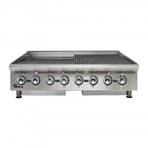 Ultra-Max® Charbroiler, gas, 48"L, 35-1/5"D, 18"H, steel radiants, adjustable manual controls every 6", welded steel frame with stainless steel exterior, cast iron broiling grates, drip pan, splash guard & grease trough, 4" legs, 160,000 BTU, cULus, UL EPH Classified, Made in USA