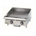 Ultra-Max® Griddle, countertop gas, 24" W x 24" D cooking surface, 1" thick steel griddle plate, 150° - 550° F embedded mechanical snap-action thermostat every 12", 4-3/8" tapered wrap-around splash guard, 3-1/2" front grease trough, heavy-duty metal knobs, standing pilot, welded steel frame with stainless steel exterior, 4" stainless steel legs with 1-3/8" adjustment, 60,000 BTU, cULus, UL EPH Classified, Made in USA