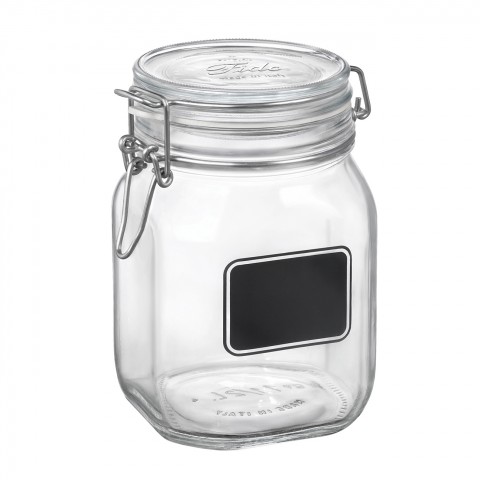 Fido Chalkboard Jar, 1.25 qt, 5.375" x 6.375", Fido Jars, Chalk, Bormioli Rocco, Soda Lime (minimum = case quantity) (STOCK item)
