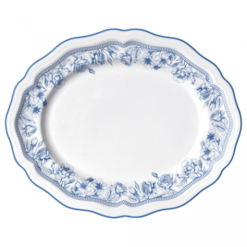 Oval Platter, 13.0" x 10.5" x 1.0", Adelina, Hannah Blue, Folio, Oval, Porcelain, (minimum order quantity = 144 pieces) (NON STOCK item)