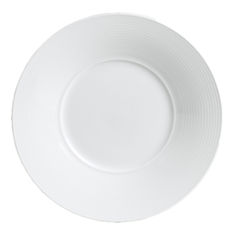Broad Rim Plate, 6.25"Aura, Rene Ozorio, Round, Porcelain, cool blue-white porcelain (minimum = case quantity) (STOCK ITEM)