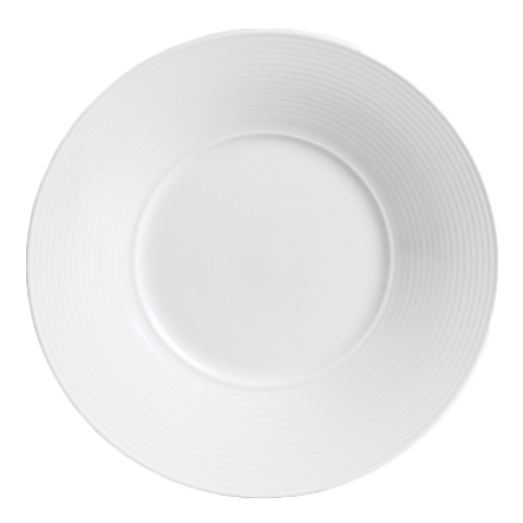 Broad Rim Plate, 11.0"Aura, Rene Ozorio, Round, Porcelain, cool blue-white porcelain (minimum = case quantity, 6 each per case) (STOCK ITEM)