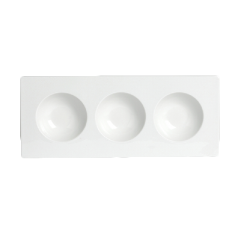 Three Well Sorbet Dish, 2.0 oz, 12.125" x 5.0" x 1.13", Accessories, Folio, Rectangle, porcelain (minimum = case quantity) (STOCK item)