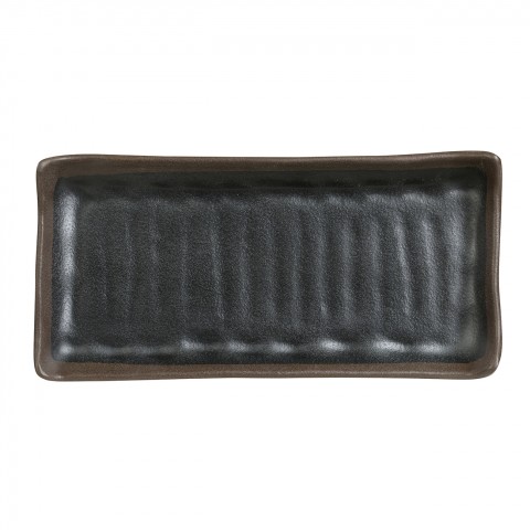 Plate, 10-1/4" x 4-7/8" x 3/4", rectangular, break resistant, withstands temperatures up to 240° F, dishwasher safe, BPA free, melamine, Grey Stone, Delfin (minimum = case quantity) (stock item)