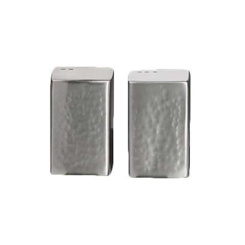 Salt & Pepper Set Rectangular Hammered, 1.25" x 2.0", Creations Metal, Metal Accessories To Fit Every Niche (minimum = case quantity) (STOCK item)