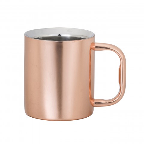 Mug, 8 oz., 4-1/2" x 3" x 3-1/2"H, large, double wall, stainless steel, Creations, copper finish (minimum = case quantity) (stock item)
