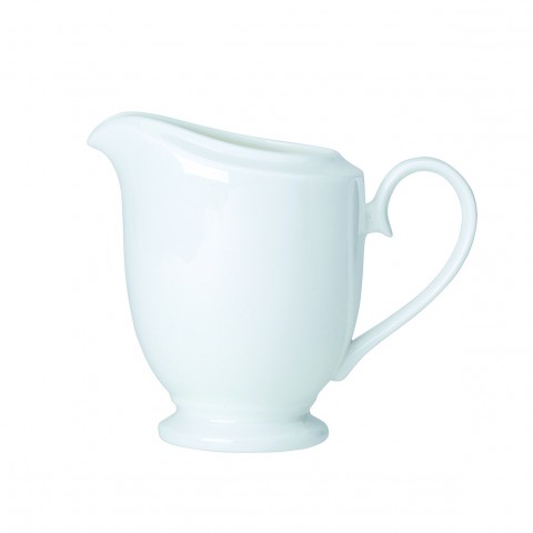Milk Jug, 9.0 oz, 3.5" x 3.0" x 4.125", Whiteware, Classic White, William Edwards, Bone China,(minimum = case quantity) (STOCK item)