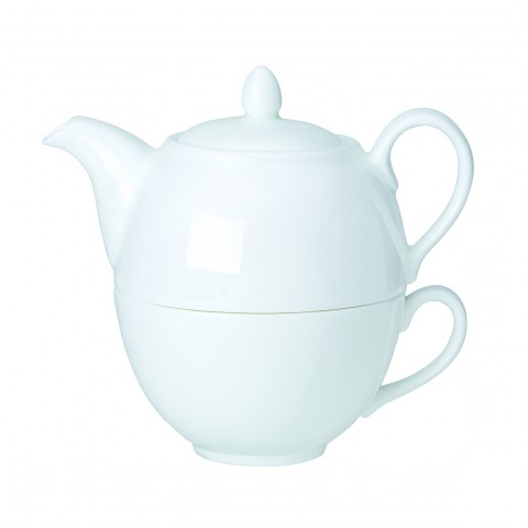 Tea For One Teapot Set, includes 16 oz. teapot and 9 oz. tea cup, stackable, bone china, William Edwards, Coupe Whites (minimum = case quantity) (non-stock item) (6 each per case)
