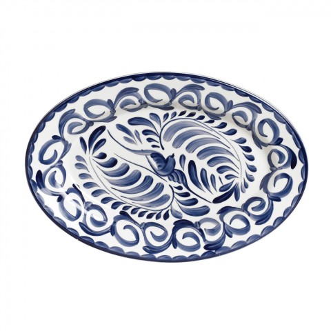 Platter Oval Rolled Edge, 10.625" x 7.75", Puebla, Blue, Anfora, Oval, Vitrified China, Puebla Is The Definition Of Style (minimum = case quantity) (STOCK item)