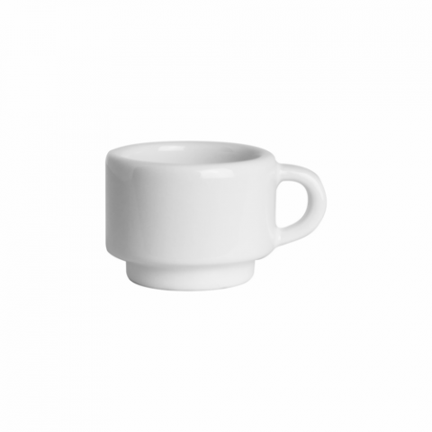 Espresso Coffee Cup, 3 oz., 2-1/4" dia. (3-1/4" with handle) x 1-3/4"H, round, stackable, fully vitrified, oven & microwave safe, lead-free, ceramic, Ultra White (minimum = case quantity) (stock item)