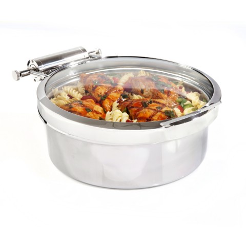 Round Induction Chafer Full Glass Lid, 4.0 qt, 16.0"W x 13.0"D x 6.0"H, 18/10 Stainless, DW Haber, Grill Chafer (minimum = case quantity) (stock item)