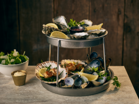 Two Tier Seafood Stand Vintage SS, x 7.625", GenwareVintage, Stainless Steel, Genware, Unique, Stainless Steel, Dishwasher Safe, Hand Wash Recommended, 1 Per Case, Industrial Vintage Look (minimum = case quantity) (STOCK item)