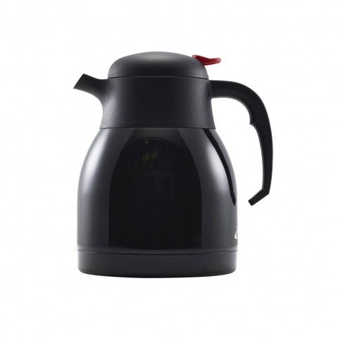 Jug, 1-1/4 qt., 7"L x 5-5/8"W x 7-5/8"H, push button, vacuum liner, 8-hour heat retention, stainless steel, black, Genware London, GW Black SS (minimum = case quantity) (stock item) (6 each per case)