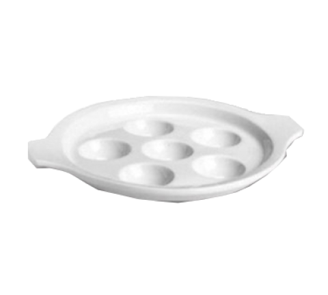 Escargot Plate, 6 hole, 8-3/8" dia., round, lug handled, Hall China, White (stock item)