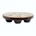 Escargot Plate, 6 hole, 6-3/4" dia. x 1-1/2"H, round, Hall China, white inside, lenox brown outside (stock item)