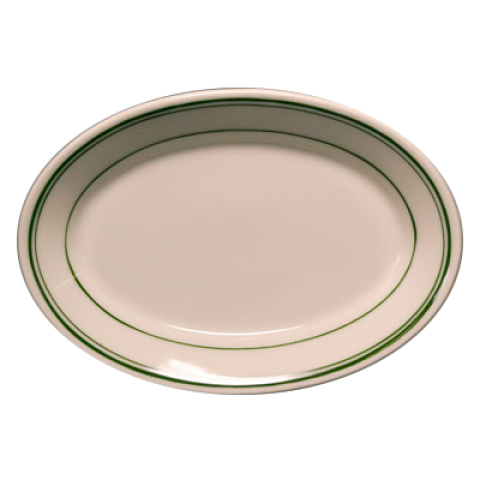 Rolled Edge Oval Platter, 8.125" x 5.625", RE & NR, Green Band, Homer Laughlin, Oval, China, Dishwasher Safe, Oven Safe, 36 Per Case, nostalgic look for your dining area (minimum = case quantity) (STOCK item)