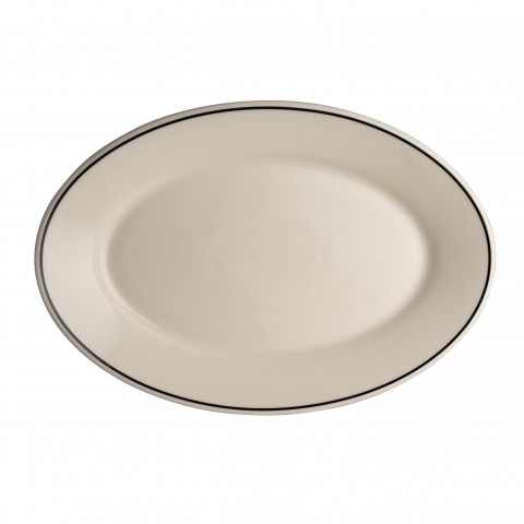 Platter, 9.5" x 6.75", oval, rolled edge, china, white, Homer, Ivory, Black Line (stock item)