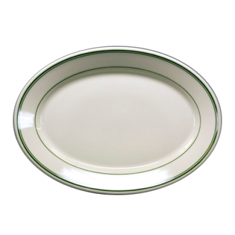 Rolled Edge Oval Platter, 12.5" x 8.75", RE & NR, Green Band, Homer Laughlin, Oval, China, Dishwasher Safe, Oven Safe, 12 Per Case, nostalgic look for your dining area (minimum = case quantity) (STOCK item)