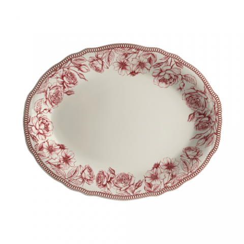 Oval Platter, 10.0" x 7.75", Carolyn, Hannah Maroon, Homer Laughlin, Oval, China, Dishwasher Safe, Oven Safe Up To 500° F/258° C, 24 Per Case, Distinctive, Scalloped Edge (minimum order quantity = 144 pieces) (NON STOCK item)