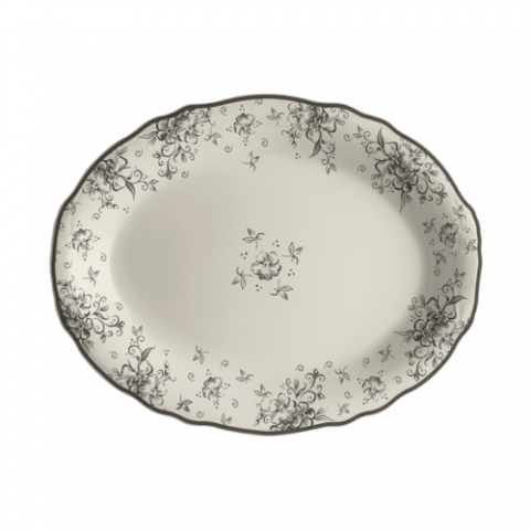 Oval Platter, 11.75" x 8.0", Carolyn, Camille Slate, Homer Laughlin, Oval, China, Dishwasher Safe, Oven Safe Up To 500° F/258° C, 12 Per Case, Distinctive, Scalloped Edge (minimum order quantity = 144 pieces) (NON STOCK item)