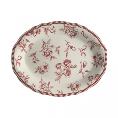 Oval Platter, 12.625" x 9.75", Carolyn, Marisa Maroon, Homer Laughlin, Oval, China, Dishwasher Safe, Oven Safe Up To 500° F/258° C, 12 Per Case, Distinctive, Scalloped Edge (minimum order quantity = 144 pieces) (NON STOCK item)
