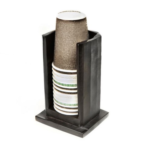 Cup/Lid Holder, 1-compartment, 4-1/2"L x 4-1/2"W x 8"H, carved, dishwasher safe, break resistant, resin, espresso, Kenny Mack, Coffee Break (minimum = case quantity) (stock item) (6 each per case)