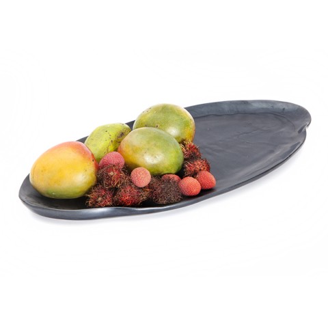 Tray, 18"L x 9-3/4"W x 1-1/4"H, oval, dishwasher safe, break resistant, resin, ebony pearl, Kenny Mack, Wave (minimum = case quantity) (stock item)