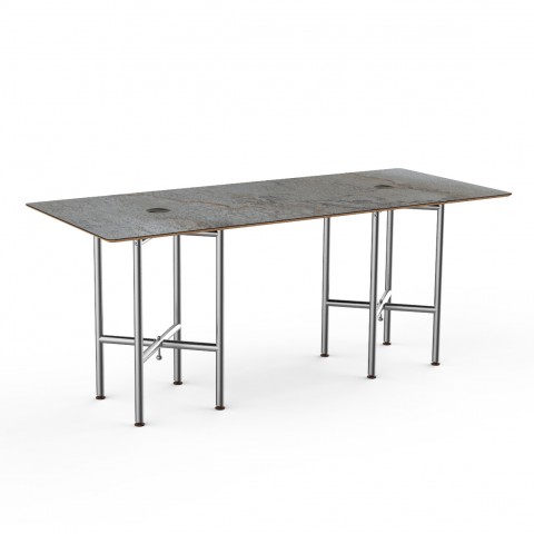 Mogogo Buffet Solutions Clix Table, 72" x 30" x 30"H, rectangular, grey slate BHP high pressure laminate with bamboo core, brushed stainless steel segments