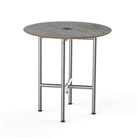 Mogogo Buffet Solutions Clix Table, 30" dia. x 30"H, round, grey slate BHP high pressure laminate with bamboo core top, brushed stainless steel segments