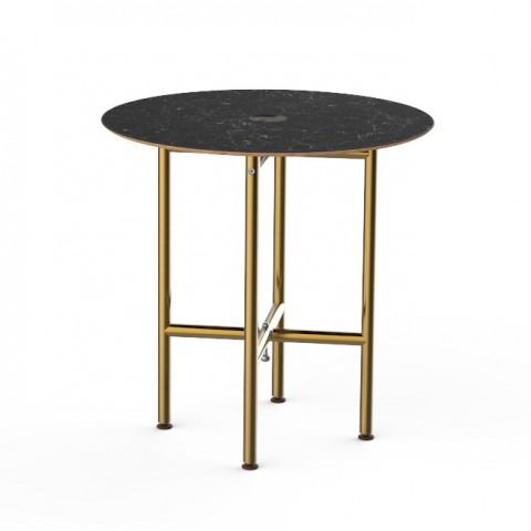 Mogogo Buffet Solutions Clix Table, 30" dia. x 30"H, round, Nero Marquina marble BHP high pressure laminate with bamboo core top, brushed brass segments