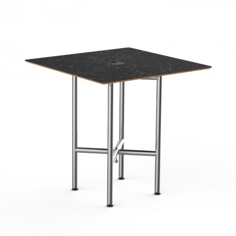 Mogogo Buffet Solutions Clix Table, 30" x 30"H, square, Nero Marquina marble BHP high pressure laminate with bamboo core top, brushed stainless steel segments