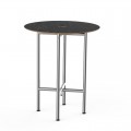 Mogogo Buffet Solutions Clix Table, 30" dia. x 36"H, round, Nero Marquina marble BHP high pressure laminate with bamboo core top, brushed stainless steel segments