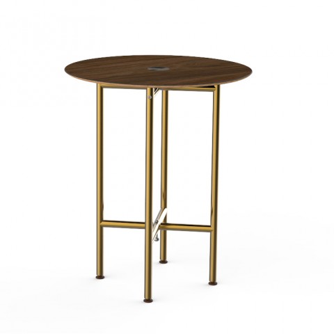 Mogogo Buffet Solutions Clix Table, 30" dia. x 36"H, round, Bengali mango wood BHP high pressure laminate with bamboo core top, brushed brass segments