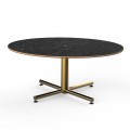 Mogogo Buffet Solutions Polo Coffee Table, 42-1/2" x 30" x 18"H, oval, Nero Marquina marble BHP high pressure laminate with bamboo core top, brushed brass segments, knockdown