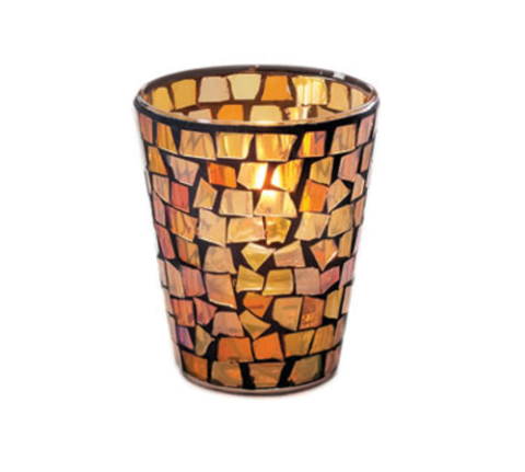 Industrial Chic Morocco Lamp, 3-1/4" H x 3-3/8" dia., round, one piece, fall mosaic, should be used with: 8, 10, or 12 hour Soft Light® liquid wax candles (30500 & 30502 & 30504) or flameless rechargeable candle set, 6 each per case (Add freight - Collect unless otherwise noted)