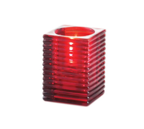 Classic Elegance Kelly Lamp, 4" H x 2-7/8" dia., square, horizontal ribbed design, glass, red, should be used with: 8, 10, 12, 15, or 18 hour Soft Light® liquid wax candles (30500 & 30502 & 30504 & 30506 & 30508) or flameless rechargeable candle set, 6 each per case (Add freight - Collect unless otherwise noted)