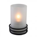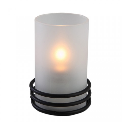Industrial Chic Brooklynn Lamp, 4"H x 2-13/16" dia., 3-ring base, frost globe, should be used with: 8, 10, 12, 15, 18, 24, or 30 hour Soft Light® liquid wax candles (30500 & 30502 & 30504 & 30506 & 30508 & 30510 & 30512) or flameless rechargeable candle set, 6 each per case, (Add freight - Collect unless otherwise noted)