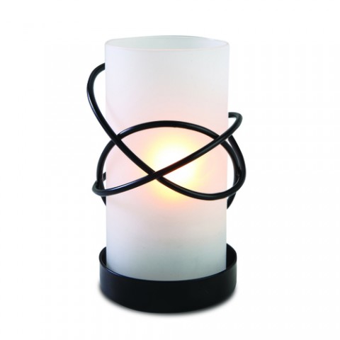 Industrial Chic Oleana Lamp, 5-3/16"H x 3-3/16" dia., contemporary black wire design base, should be used with: 24, 30, 36, or 50 hour Soft Light® liquid wax candles (30510 & 30512 & 30514 & 30516) or flameless rechargeable candle set, 6 each per case (Add freight - Collect unless otherwise noted)(to be discontinued, contact factory for availability)