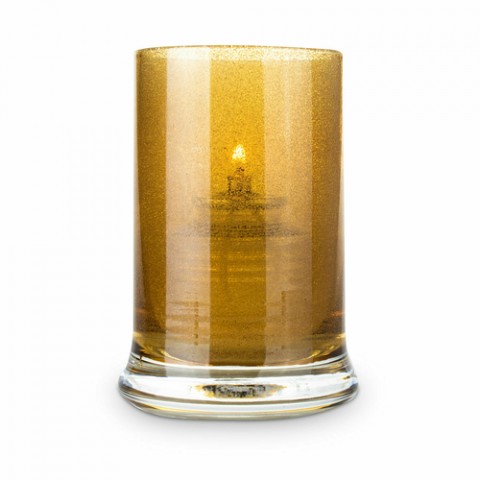 Siren Lamp, 4-1/2"H x 3" dia. OA, cylinder, gold, glass, should be used with: 8, 10, 12, 15, & 18 hour Soft Light® liquid wax candles or flameless rechargeable candle set, 6 each per case (Add freight - Collect unless otherwise noted)(to be discontinued, contact factory for availability)