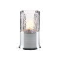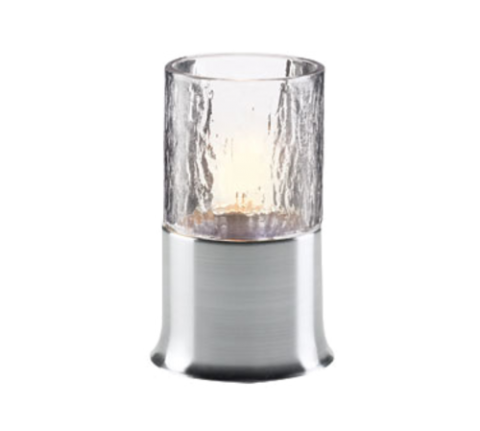Vintage Charm Corsa Lamp Base, 2-9/16"H x 3-9/16" dia., round, flared bottom, brushed silver, should be used with 36 hour Soft Light® liquid candle wax (30514), fits globe (85404), 6 each per case (Add freight - Collect unless otherwise noted)