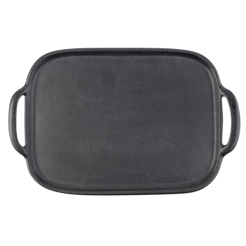 Tray, 20-3/8" x 13-1/4" x 1-1/2", large, rectangular, with handles, faux cast iron, melamine, black (1 each minimum order)