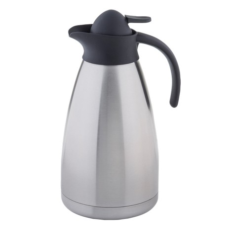 Coffee Carafe, 68 oz., thumb press black plastic lid, vacuum insulated, dishwasher safe (but hand wash recommended), stainless steel (1 each minimum order)